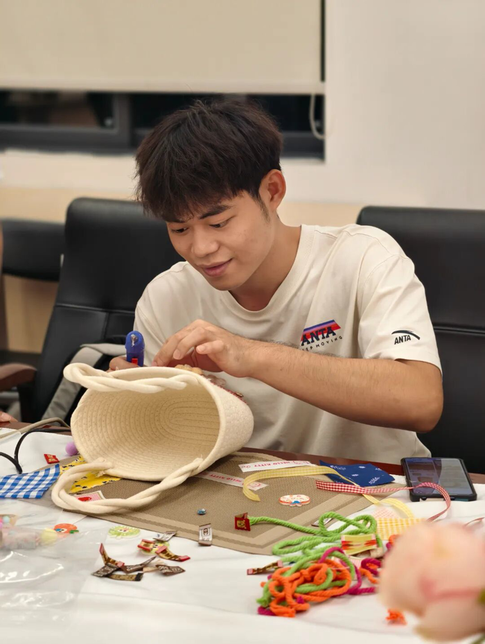 “穿针的时候慢一点,我们一起把这个‘柿柿如意’挂件做好!”手工协作环节把活动推向高潮。现场设置柿子挂件与手提包制作两类手工项目,指导老师耐心示范步骤,骨干们自由分组、互帮互助。指尖翻飞间,一个个精致的手工制品逐渐成型,不仅传递着创意与心意,更让“协同合作”的团队精神深深扎根。