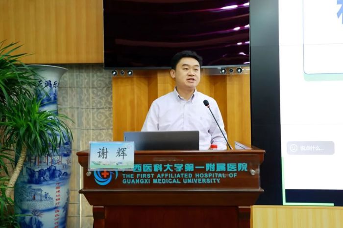 黄锋对谢辉的到来表示热烈欢迎。他表示,我院正全力推进学科建设与临床转化研究,亟需高层次专家指导支持,希望以此次交流为契机,进一步深化双方科研合作,全面提升医护人员的科研能力与创新水平,期待本次讲座能为医院临床科研工作带来宝贵经验与启发。