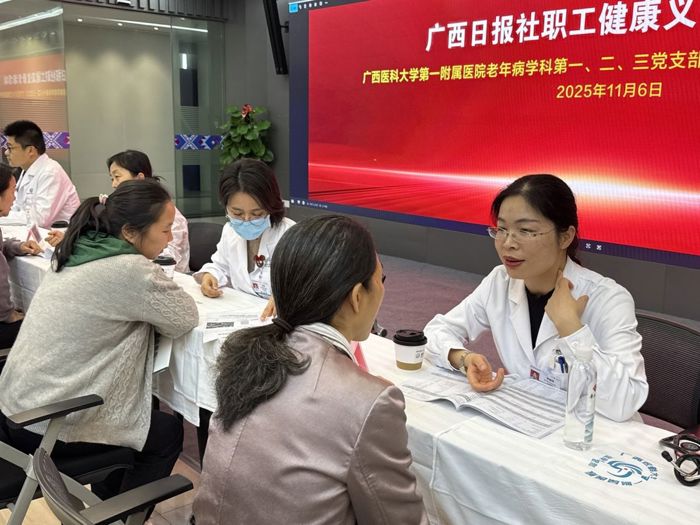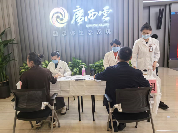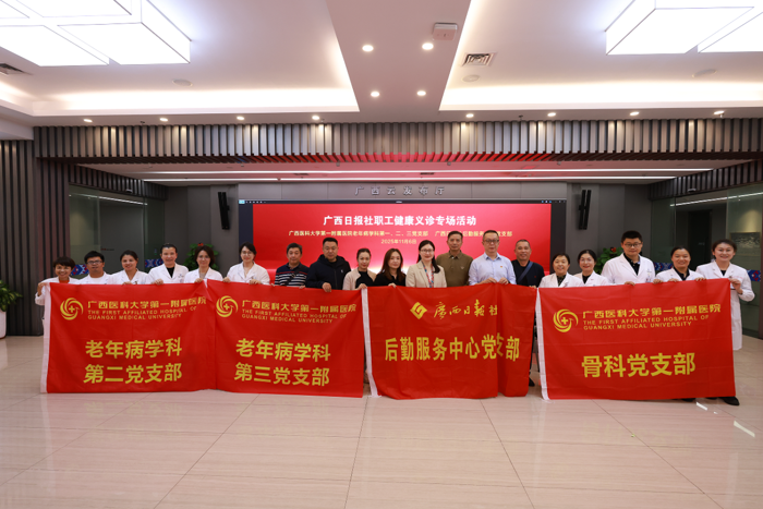 为积极践行“健康中国”行动,推动健康知识进企业活动,11月6日,健康管理部组织多学科专家团队走进广西日报社举办健康义诊专场活动,为报社在职及离退休职工提供面对面健康服务。
