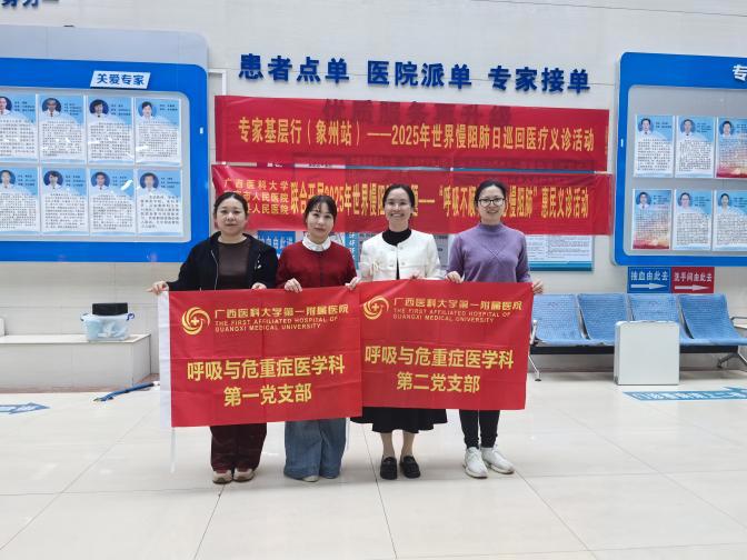 为深入贯彻落实新时代党的建设总要求,以高质量党建引领医疗卫生事业高质量发展,11月14-15日,由我院呼吸与危重症医学科第一、二党支部牵头,联合来宾市人民医院内科第三党支部、药学、儿科、重症医学科党支部以及象州县人民医院内科重症联合党支部,在象州县人民医院举行一场以“呼吸与共,健康同行”为主题的党建座谈交流会。