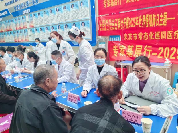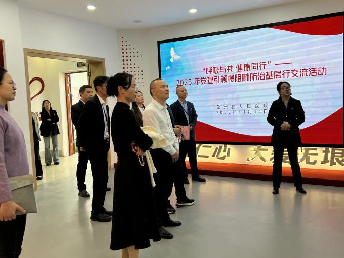 在经验交流环节后,覃彩群作总结发言,她强调,此次三级联建活动是推动优质医疗资源扩容下沉、服务基层群众的具体实践。希望以活动为契机,建立长效合作机制,让老百姓在家门口就能享受到更优质、便捷的医疗服务。座谈会后,与会代表共同参观了象州县人民医院党建文化活动室与廉洁文化活动室,并加入“2025年党建引领慢阻肺基层行”暨“2025年世界慢阻肺日”巡回义诊活动和专家基层行-2025来宾市呼吸诊疗技术提高班的培训授课工作中。