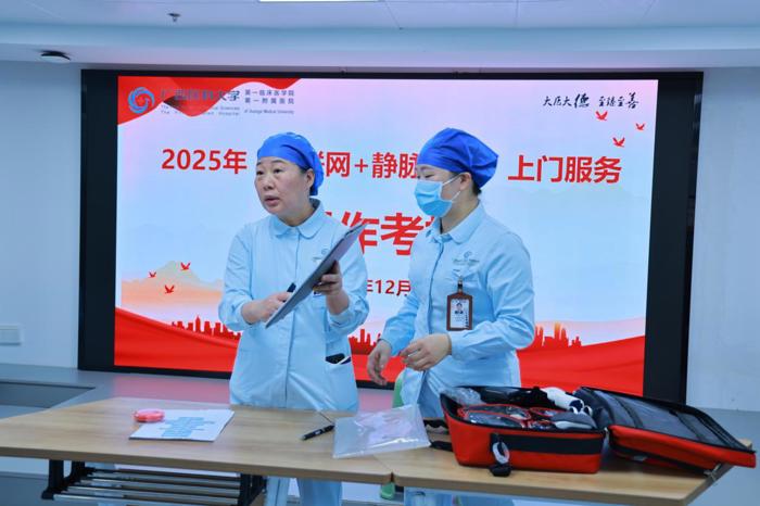 钟娟,EICU赵小乐、韦秋兰围绕“互联网+静脉采血”上门服务的全流程进行了系统讲解与现场示范。演示聚焦订单智能接收、线上预评估与沟通、标准化上门操作、全程电子化记录、后续健康指导、耗材规范收费及服务评价等关键环节,清晰呈现了数字化护理服务的完整闭环。