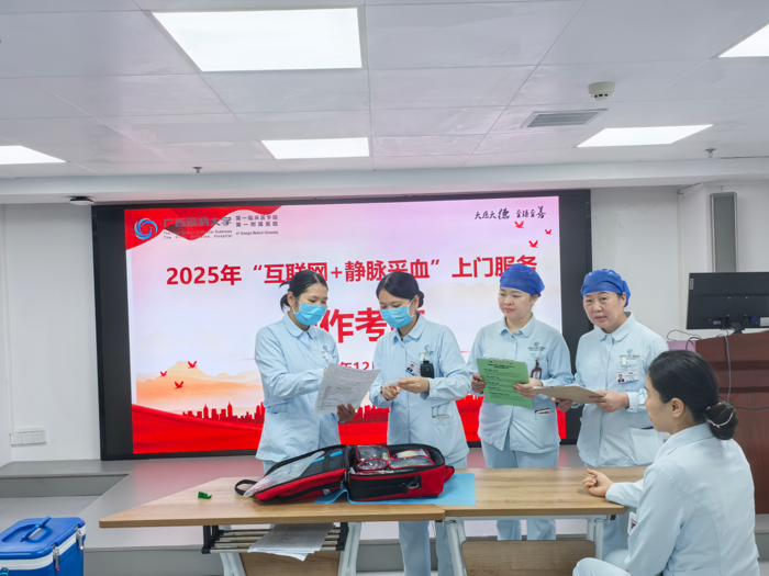 随后,参加岗前培训的护士分两组进行训练,严格依照服务标准化流程及评分体系进行考核,注重“线上线下”融合,突出互联网工具的场景化应用,尤其注重人文关怀与沟通艺术的融入——要求护理人员在操作中体现对患者的细致关心、亲和态度,展现良好职业风貌,实现技术与温度并重的优质服务。最终27名护士顺利通过考核,其中19人为儿科护士,为“互联网+静脉采血”上门服务扩充专业力量,显著缓解了以往该服务领域中儿科护理人力紧缺的现实问题。