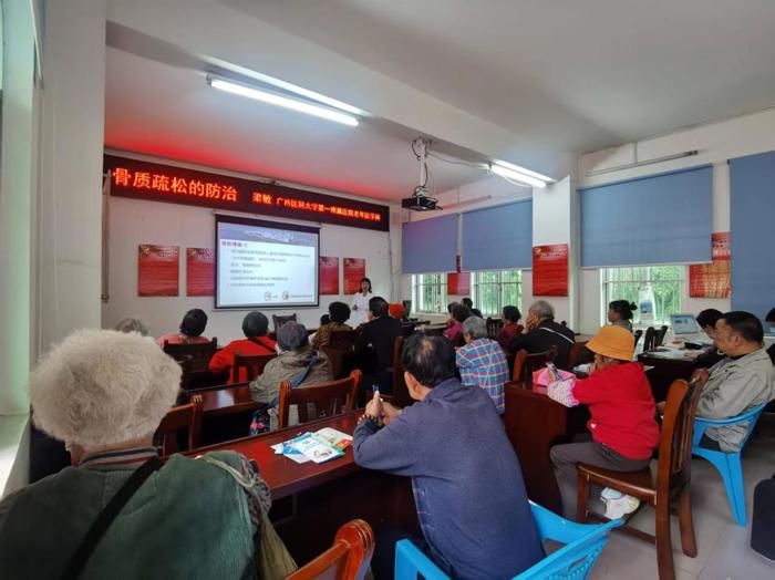 在社区活动室,梁敏围绕“骨质疏松的防治”主题,通过图文并茂的PPT,用通俗易懂的语言向居民讲解了骨质疏松症的病因、预防措施及居家管理技巧。她还针对居民提出的健康问题“一对一”解答,引导居民树立“早预防、早发现、早治疗”的健康理念。“原来骨质疏松不是“老年人专利”,年轻时就要注意补钙和锻炼!”听完讲座的居民王大爷感慨道。