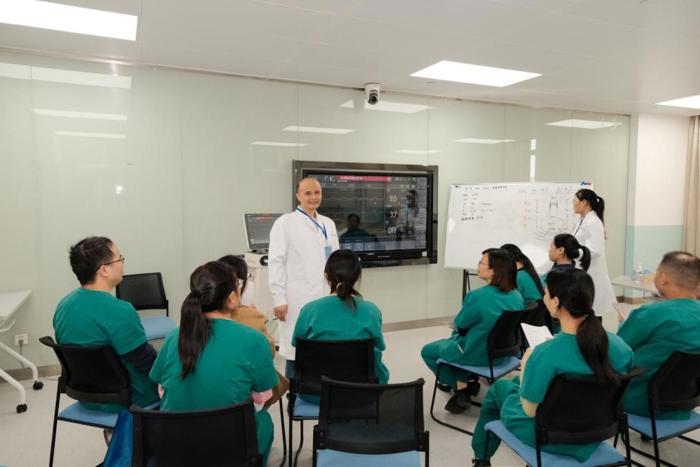 情境模拟实战环节更是将培训氛围推向高潮。在PICU实训室,杨志勇主任医师、梁秀安主任医师、黄丹娜主管护师、黎萍医师四位导师带领学员们开展机械通气危情管理情境模拟演练,通过还原真实临床危重症场景,考验学员们的应急反应、团队协作与综合诊疗能力,现场氛围紧张而有序,学员们在实战中积累经验、熟悉DOPE流程,掌握机械通气时突然气管移位、堵管、气胸等危急并发症的快速识别和紧急处置方法。