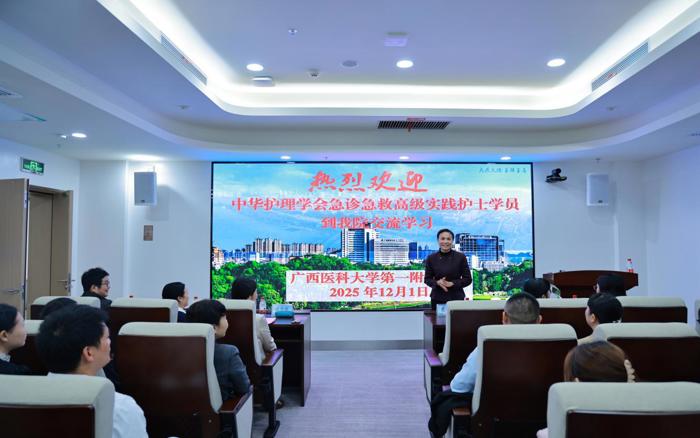 12月1日,我院在中国—东盟医疗保健合作中心(广西)5楼小学术厅举行2025年中华护理学会急诊急救高级实践护士临床实践开班仪式。医院党委副书记莫新少、护理部主任游雪梅、基地负责人黄春艳及急诊片区护士长等代表,辅导小组全体成员及中华护理学会首届急诊急救APN培训班学员/吉林大学第一医院急诊科护士长范红权参加开班仪式,护理部副主任韦琴主持。