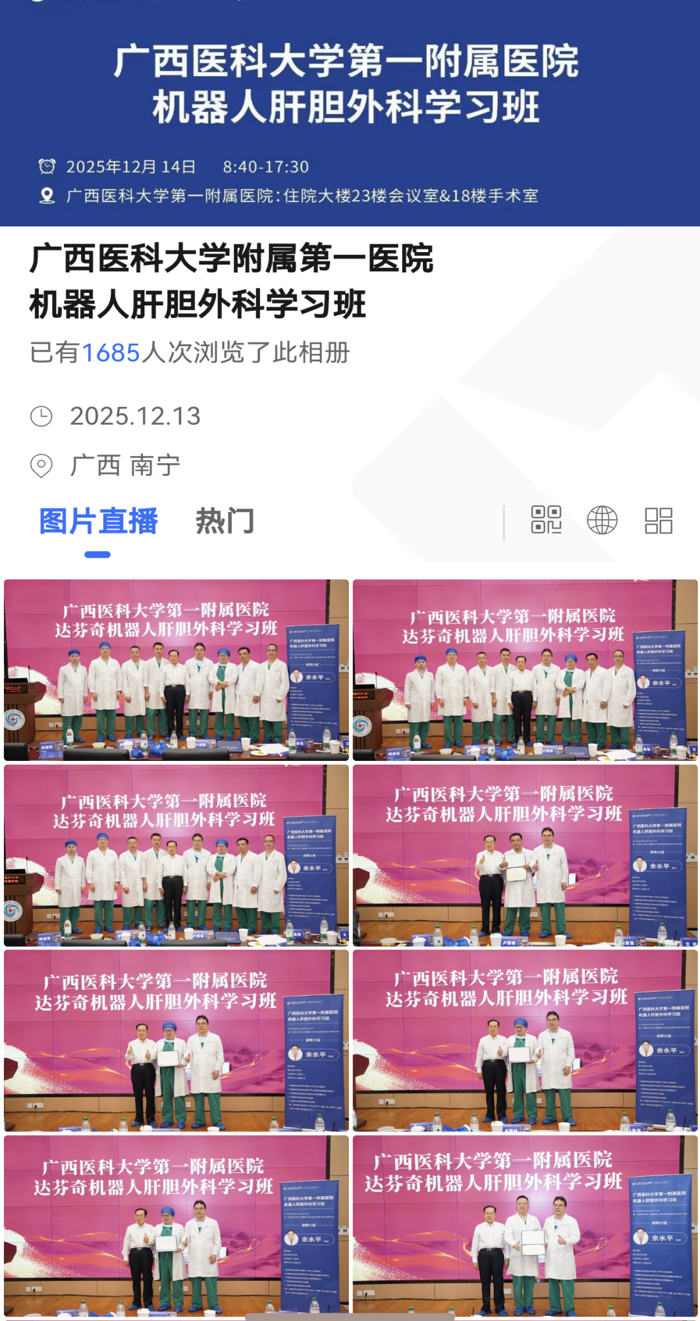 2025年12月12-14日,广西医学会普通外科学分会2025年学术年会暨广西普通外科临床诊治与基础研究新进展培训班在南宁召开,同期举办机器人普通外科手术培训班。