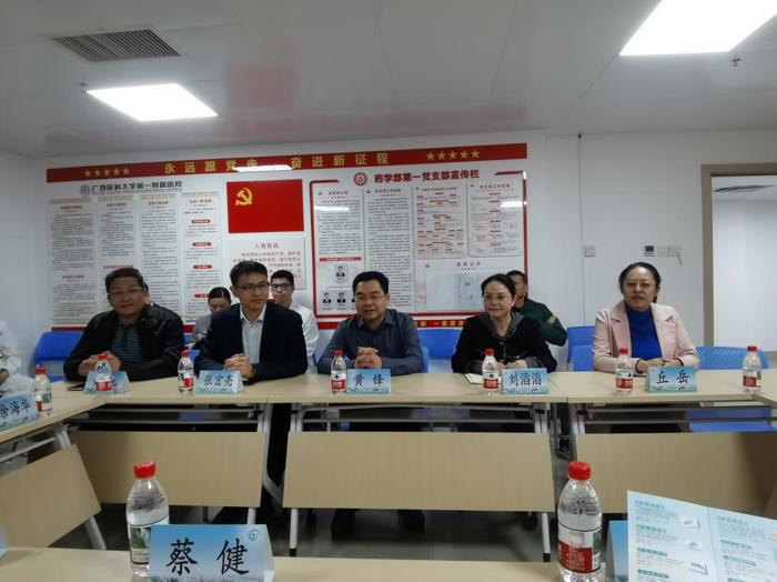 12月17日下午,北海市人民医院副院长蔡健率该院药学、医务、信息等部门负责人及骨干一行8人,莅临我院开展以“AI赋能药学服务与院内制剂发展”为主题的参观交流活动。我院副院长黄锋出席活动并致欢迎词,药学部主任张宏亮,副主任刘滔滔、丘岳,药学部第一党支部书记黄振光及科室部分骨干参加交流。