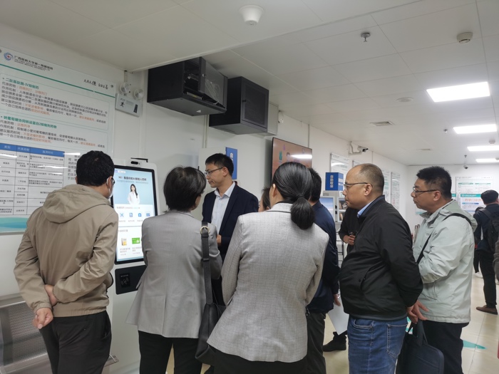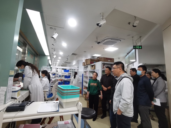 座谈结束后,在我药学部相关人员陪同下,蔡健率一行先后实地参观了住院药房和门诊药房,重点了解移动摆药系统、单剂量摆药流程以及麻醉精神药品的智能化、无纸化闭环管理等情况,并深入了解“数智人药师”实际应用情况。同时,就智慧药房的建设理念、运行模式与管理经验进行了现场交流。