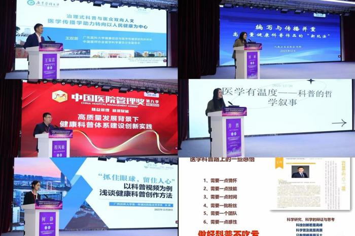 本次学术学习班特邀多位国内权威科普专家授课。中国医师协会医学科学普及分会会长田艳涛教授作《科学普及与科技创新同频共振之初步探索》主旨报告;副会长王双苗教授深入阐释“治理式科普与医众双向人文”理念;人民卫生出版社健康科普部主任刘彬教授分享了高质量健康科普作品的创作新形态;重庆大学附属肿瘤医院科普部主任程风敏教授介绍了体系化科普建设的创新实践;南宁广播电视台主持人井然从传播学角度解析了科普叙事策略;我院何静老师则结合实际案例,讲授了科普视频创作的实用技巧。系列课程深度融合数字健康与智能技术趋势,为与会者提供了兼具前瞻视野与实践指导的学术盛宴。