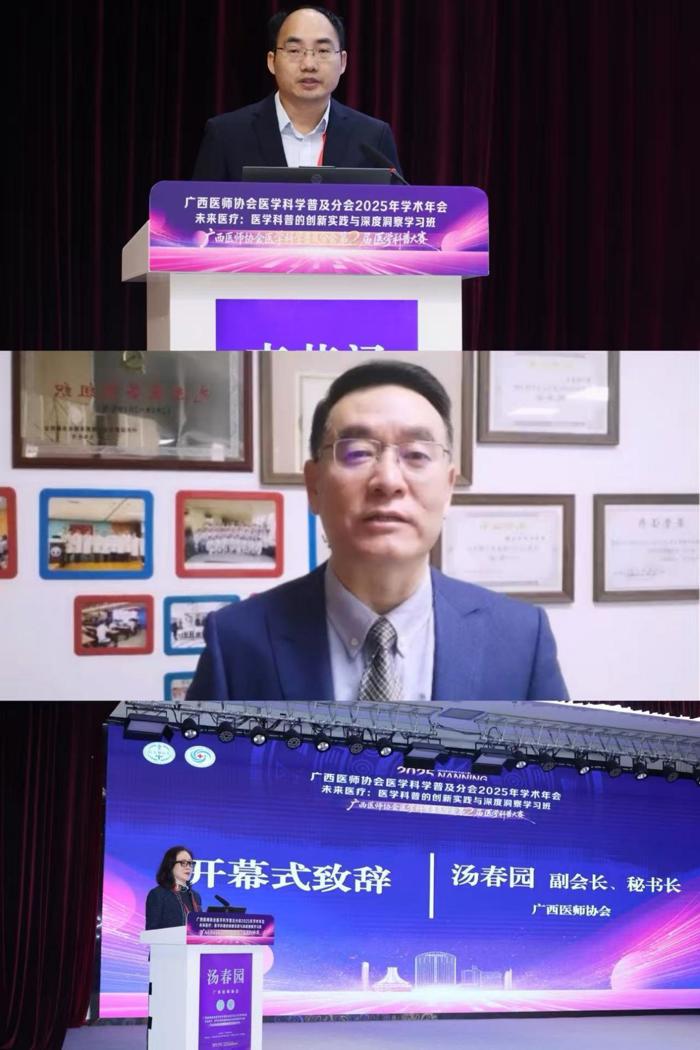 开幕式上,广西医科大学校长曾志羽教授致辞,他指出,医学科普是医学院校和医务人员服务社会的重要体现,必须坚持医教协同,加强科普人才培养,让权威、生动、管用的健康知识真正惠及大众。我院副院长、分会主任委员黄锋代表承办单位致辞,系统阐述了在新阶段推动医学科普高质量发展的目标与路径。