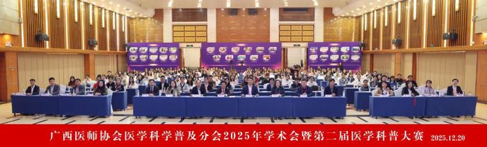12月20日,由广西医师协会主主办,广西医师协会医学科学普及分会和我院承办的“广西医师协会医学科学普及分会2025年学术年会暨未来医疗:医学科普的创新实践与深度洞察学习班”在南宁召开。会议同期举办了第二届医学科普大赛决赛。来自区内外的200多名医学科普专家、学者及医疗工作者齐聚一堂,共同围绕医学科普的创新路径与全民健康素养提升展开深入研讨。