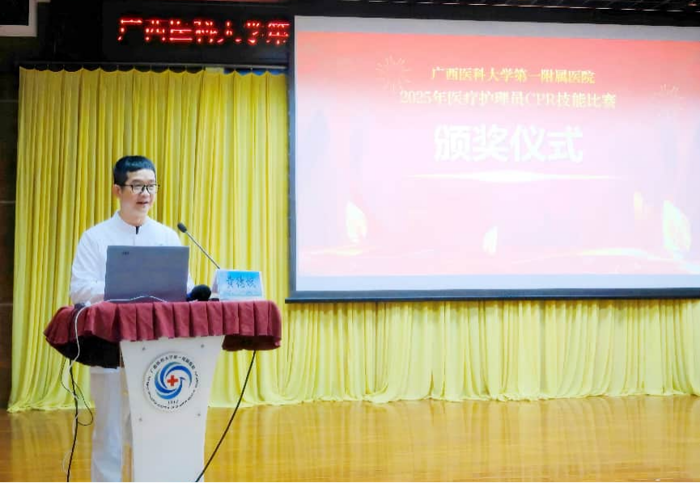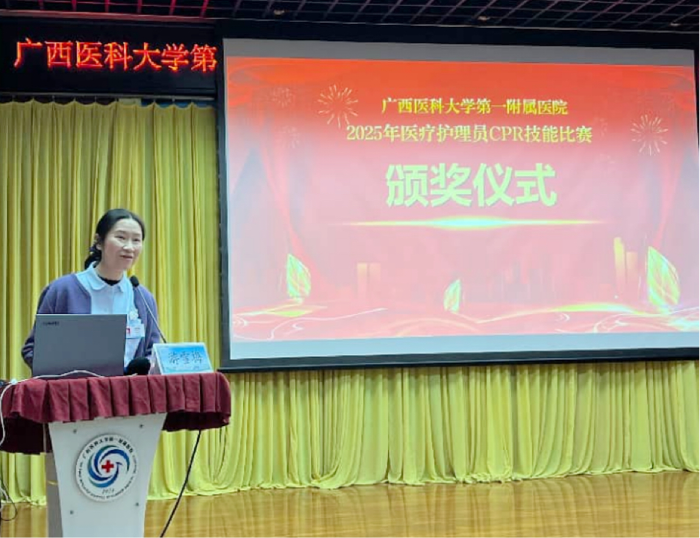 颁奖仪式上,护理部主任游雪梅致辞。她指出,开展规范化、同质化急救技能培训是医院筑牢医疗安全根基、提升医疗服务质量的关键举措,对保障患者生命安全具有重要意义。游雪梅主任充分肯定了全体医疗护理员在培训与比赛中展现出的严谨态度和扎实技能,强调本次活动以“以赛促学、以学促用”为核心,旨在以竞赛检验培训成效,以实战锤炼急救能力。