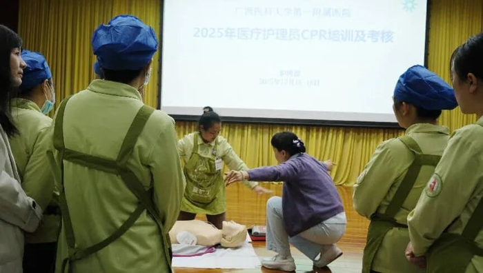据悉,本次医疗护理员CPR系统化培训于12月16日正式启动。理论培训阶段,特邀急诊科潘荣平、兰卫华两位经验丰富的老师授课,围绕“单人徒手心肺复苏+AED”核心内容,分上、下午两场开展系统讲解,确保培训覆盖全面、讲解透彻。全院345名医疗护理员全员参与理论考核,合格率达100%,为后续实操技能学习筑牢理论基础。