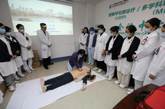 陈国力指出,导医团队驻守门诊一线,与患者接触紧密,是辅助患者就诊的有力依靠。熟练掌握心肺复苏知识与技能,可在紧急情况下快速协助医护人员为心脏呼吸骤停患者提供有效救助。