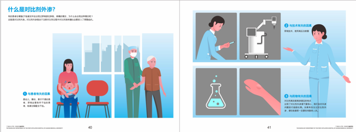 除了线下推动标准的落地,影像护理宣教公众号推送系列科普,如《碘对比剂外渗标准直通车》推文,《碘对比剂外渗处理流程》科普动画。