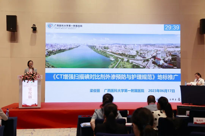 此外,在“广西医学会放射医学年会”“广西医师协会放射医师分会年会”“广西护理学会影像护理专业委员会年会”等省级会议,以及“中华护理学会放射介入专业委员会年会”,开设“DB45/T 2935-2024标准解读”专场,邀请起草组成员逐条释义。与会代表纷纷表示,标准把外渗风险分级、护理措施、随访要求十分详细,获益匪浅。