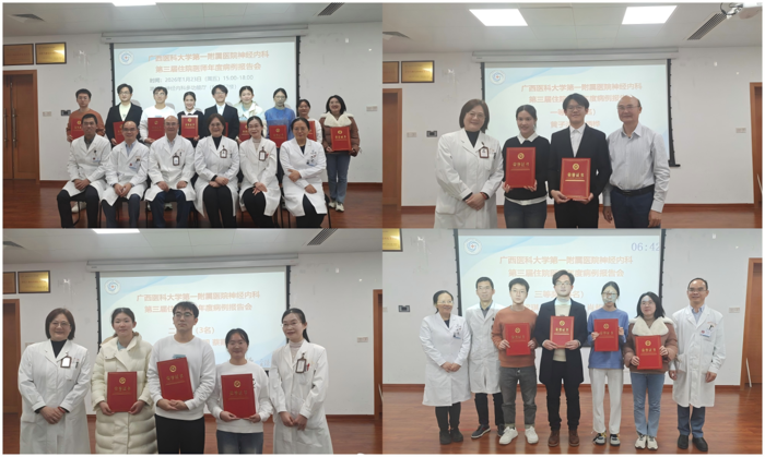 经过激烈角逐,大赛最终评选出一等奖2名、二等奖3名、三等奖4名。自2024年开展第一届病例报告比赛以来,三届比赛均检验和展示了神经内科青年医师扎实的临床功底、敏锐的诊疗思维与蓬勃的发展潜力,比赛迈向常态化与持续深化。科室将持续打造该学术活动品牌,继续深化教学相长机制,为培养更多优秀神经内科医学人才、提供更高水平医疗服务而不懈努力。