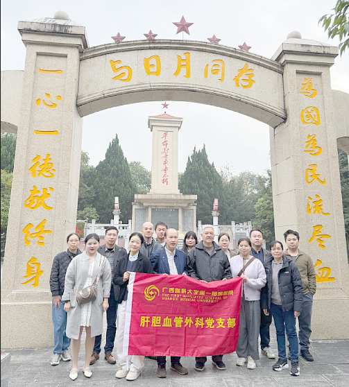 1月17-18日,在支部书记肖开银带领下,我院肝胆血管外科党支部到河池市人民医院(我院自治区级区域医疗中心合作单位)肝胆外科开展“党建引领 肝胆相照”主题党日活动。河池市人民医院副院长韦仁杰,我院肝胆外科党支部老专家、老党员彭民浩教授,医护党员、民主党派人士、入党积极分子,河池市人民医院肝胆外科主任李鸿飞及该科党支部全体成员参加。