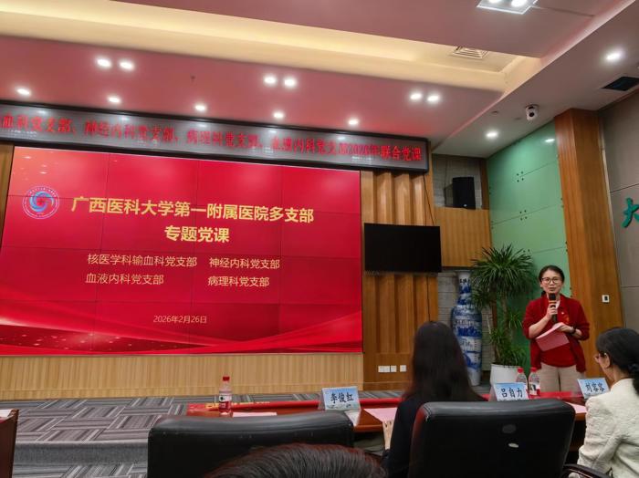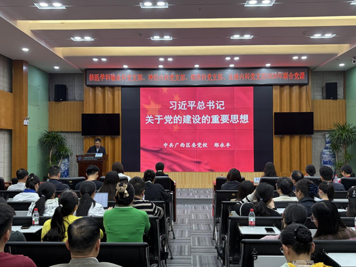 2月26日晚,我院核医学科输血科党支部、神经内科党支部、血液内科党支部、病理科党支部联合开展党的创新理论专题党课。特邀中共广西区委党校文史教研部副主任郑永丰副教授莅临授课。我院党委副书记莫新少、各党支部书记、委员及全体党员参加,核医学科输血科党支部书记李俊红主持开幕式。