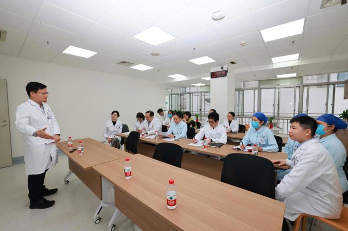 医务部部长梁晓南、医院质量管理办公室主任蒋敦科,护理部副主任董雪云、黄德斌总结肯定了各科室在演练中的表现,并从病房及病人综合管理与应急处置、《药物临床试验质量管理规范》及医疗核心制度落实、人员资质及分诊转运流程合法性、操作时效性与合规性、医护团队分工协作及医患沟通等方面作点评。