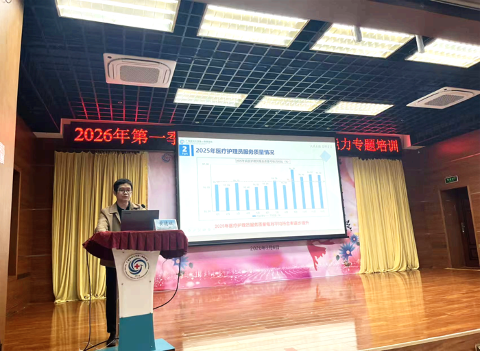 培训伊始,黄德斌进行2025年医疗护理员工作总结暨2026年工作布置,他系统回顾了2025年我院医疗护理员在服务质量、满意度、培训成效及免陪照护病房开展等方面的工作成果,客观分析了存在的问题与不足,并对2026年重点工作进行部署。他表示,今年将持续扩大免陪照护试点病房规模,优化培训体系与质量考核标准,进一步提升医疗护理员队伍专业化水平。