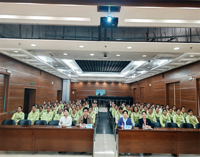 随后,余丽作《人文关怀理念在护理实践中的深度融合与应用探索》专题授课。她从人文关怀的政策背景与核心要素入手,结合临床实践案例,系统讲解了沟通技巧、情绪管理及人文素养提升等内容。同时,她对由我院发布的《医疗护理员人文关怀能力建设规范》团体标准进行了宣贯培训。余丽作为该标准主要起草人之一,结合标准内容,深入阐释了人文关怀在照护实践中的具体应用与落地路径,旨在促进标准在临床工作中的有效转化。