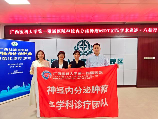 为推动广西区域神经内分泌肿瘤规范化诊疗水平同质化提升,搭建多学科协作交流平台,赋能基层医疗高质量发展,2026年3月27日,我院神经内分泌肿瘤多学科诊疗(MDT)团队走进北海市人民医院银滩院区,与北海市人民医院、北海市第二人民医院共同举办广西壮族自治区神经内分泌肿瘤规范化诊疗沙龙,圆满完成学术巡讲、病例研讨与多学科深度交流。