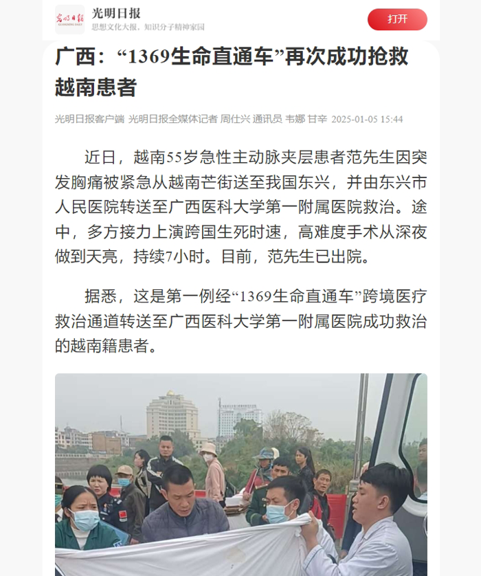 4.光明日报:广西:“1369生命直通车”再次成功抢救越南患者