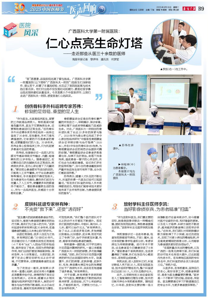 1.广西台新闻频道:【第八个中国医师节】用我坚守 呵护人民安康https://h5.gxtv.cn/html/article/wapArticle.html?dataSource=0objId=a469d5dcb071460fb86aa84e4af369b9 2.广...