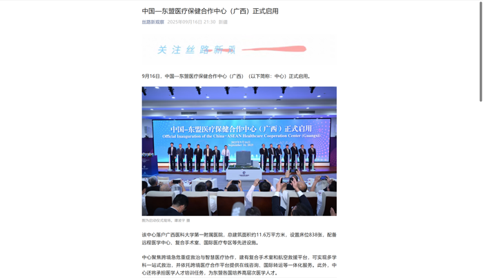 3.中国新闻网:中国—东盟医疗保健合作中心(广西)启用