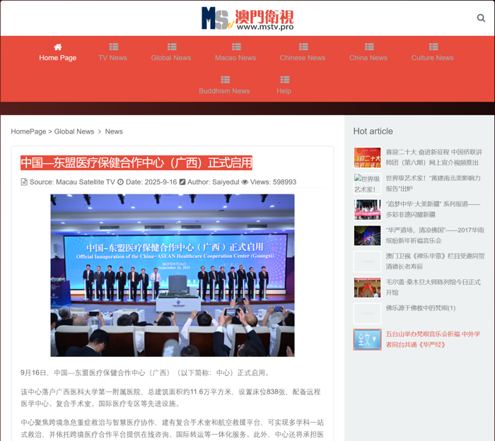 12.澳门卫视:中国—东盟医疗保健合作中心(广西)正式启用