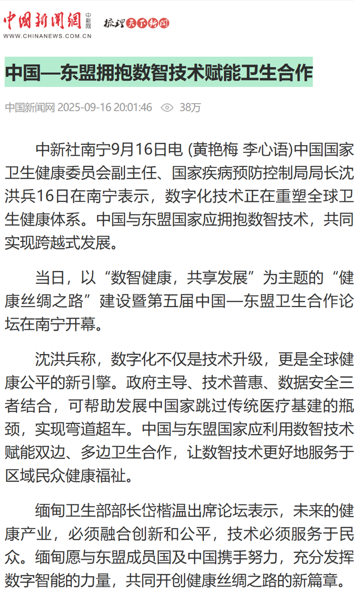 2.中国新闻网:中国—东盟拥抱数智技术赋能卫生合作