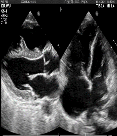 ▲术前心脏彩超:右房室增大+三尖瓣、肺动脉瓣轻度关闭不全+肺动脉主干及分支增宽