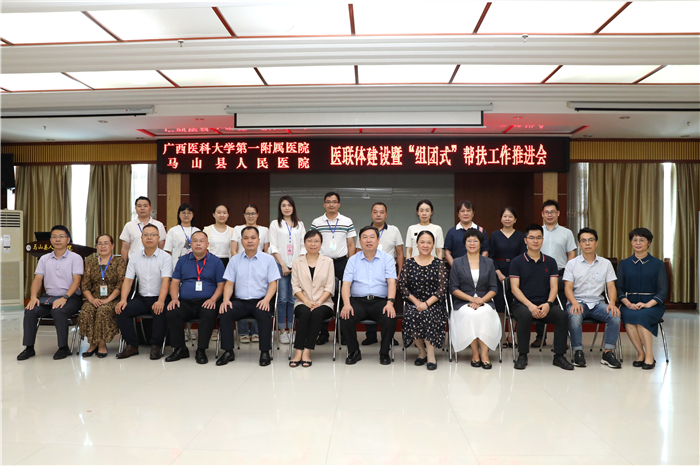 7月5日上午,我院院长陈俊强带领医院办公室、医务部、护理部、信息中心、国际合作和对外交流部、财务办公室、医疗保险管理办公室等相关部门负责人到马山县人民医院推进“组团式”帮扶工作。