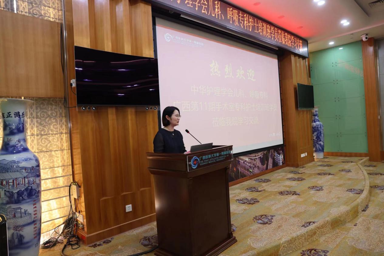 韦琴向各位学员介绍了医院和护理学科概况、临床教学、优势技术及学习要求等内容,并强调:勤学如春起之苗,不见其增,日有所长。希望学员们严格遵守学会和基地的各项管理规定,团结互助,共同进步,掌握更专业的技能服务更多的患儿。