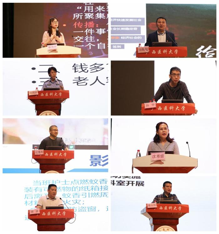 靳芳卉作《大学生网络素养提升》专题讲座,指导学生增强网络安全意识和风险防范能力,提高文明用网和参与网络生态治理的自觉性和主动性。余海超以《“两大奇迹”背后的成功密码—学习宣传贯彻党的二十大精神》为题阐述“两大奇迹”的精神内涵。陈莉清以《反诈宣传进校园,警校联手筑平安》为题,详细介绍了新型电信诈骗案件类型和特点,结合身边实例向学生进行防诈骗专题教育。