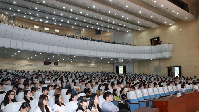 为贯彻落实党的二十大精神,讲好住培故事,在我区开展住院医师规范化培训工作十周年之际,9月15日下午,我院在广西医科大学图书馆演讲厅举办住培宣讲进校园活动。活动由我院研究生和毕业后教育培训部牵头,学生工作部协调组织,广西医科大学2023级学术型博士研究生、学术型硕士研究生等共约500人参加活动。