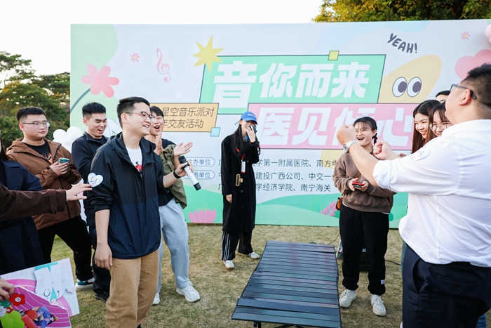 为做好服务青年工作,加强单位间的交流,丰富青年的业余文化生活,进一步激发工作和生活热情,11月18日下午,我院团委和工会联合组织,与南方电网广西电网公司等多个企事业、机关单位团委在五象新区总部休闲公园举办“音你而来·医见倾心”星空音乐派对青年联谊活动。200多名青年参加。