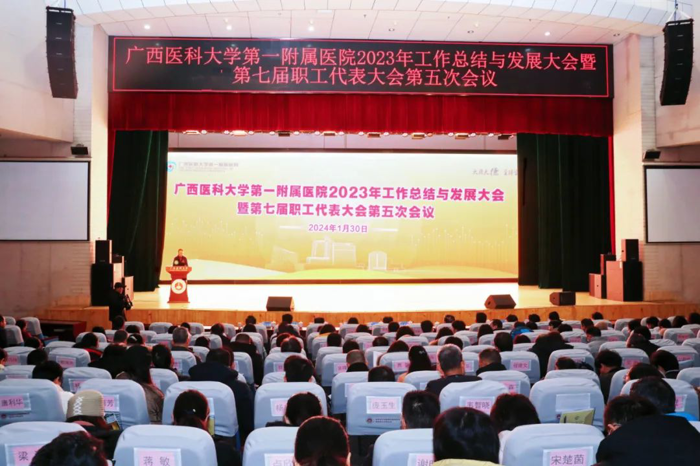 1月30日,广西医科大学第一附属医院2023年工作总结与发展大会暨第七届职工代表大会第五次会议在学校图书馆演讲厅举行。全体在院院领导、中层干部、职代会正式代表、特邀嘉宾370余人参加。我院党委副书记、工会主席莫新少主持会议。