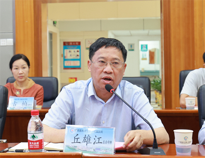 李暄介绍调研组成员并说明来意。他结合上级有关政策要求,强调了我院作为广西公立医院头部单位,要发挥对全区公立医院价费监管工作的示范引领作用,保持与上级监管部门的沟通机制,综合运用多种督办方式推进监管工作、落实监管主体责任,不断提升监管的标准化规范化水平。