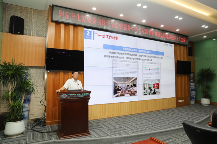 9月23日下午,国家卫健委项目资金监管服务中心专家组一行14人莅临我院,对实训医院建设技术工作开展调研。国家卫健委项目资金监管服务中心纪委书记韦四皇、培训指导处副处长(主持工作)杨珺;自治区卫健委财务审计处处长邓军、项目资金监管服务中心主任梁宇晖;云南、新疆卫健委财务处及实训医院财务部门相关人员;我院总会计师丘雄江及相关职能部门参加调研。我院财务办公室主任邬丽艳主持会议。