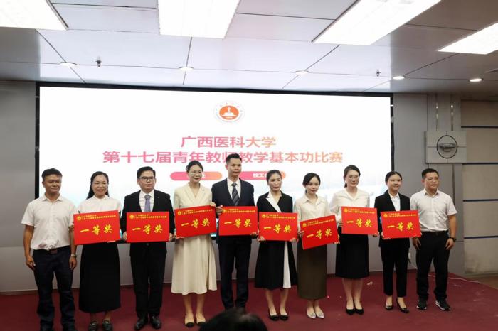 9月26日,广西医科大学第十七届青年教师教学基本功比赛在学校综合楼圆满落幕。本次比赛汇聚了全校各二级学院、直属及非直属附属医院的37名青年教师同场竞技。我院病理学教研室蒋尧瀛老师、老年病学教研室梁春梅老师在比赛中表现突出,分别荣获一等奖和二等奖。