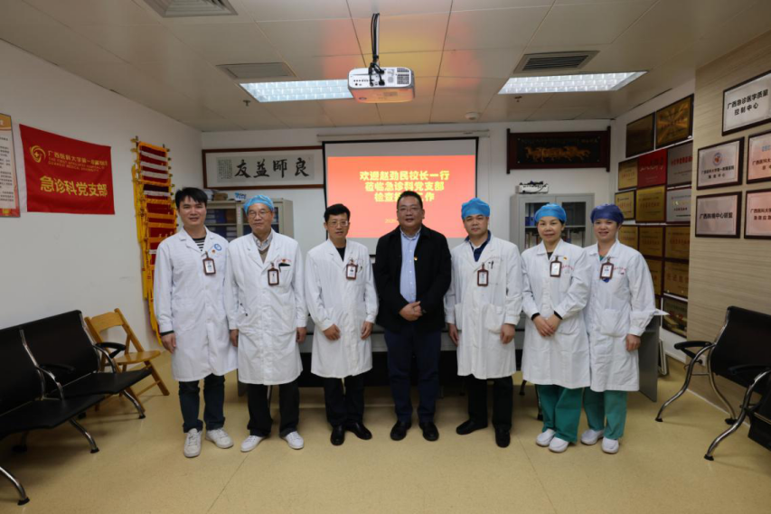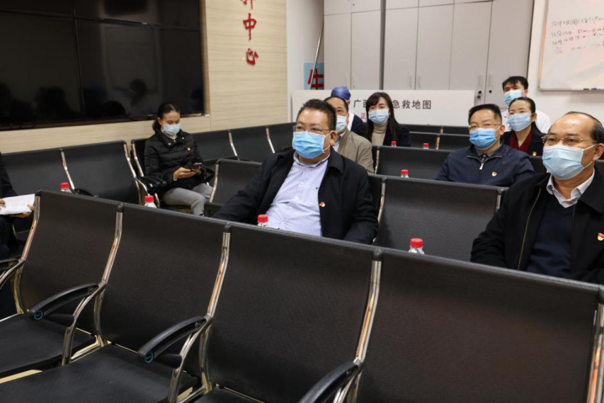 12月7日上午,广西医科大学校长赵劲民一行莅临我院实地督查推进推进第一附属医院、第二附属医院软弱涣散基层党组织整顿验收工作。学校党委组织部部长覃远汉、党(校)办主任卢德成,我院党委书记洪坚善、第二附属医院党委书记刘志明,我院党委副书记莫新少、朱海宁,第二附属医院党委副书记黄惠桥及各单位相关党务部门负责人和骨干参加会议。