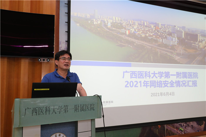 座谈会上,曾志羽介绍了本次调研的目的和主要任务,传达了学校党委对于加强全校网络安全工作的要求。韦庆军从网络和信息安全责任落实、关键信息基础设施确定情况、医院网络空间安全保障、网络安全等级保护、改进措施与整改效果等方面汇报了我院2021年网络安全工作情况、存在问题、整改措施及下一步工作计划。