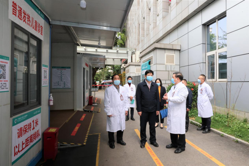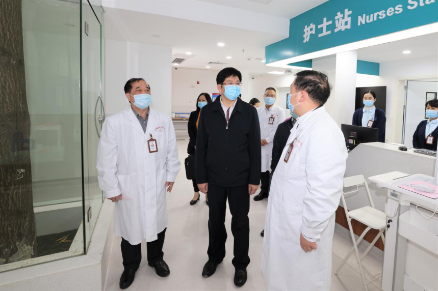 在院党委书记洪坚善、院长陈俊强陪同下,黄照权书记一行先后到日间手术中心、疫情防控预检分诊及发热门诊、核酸检测点、中国—东盟医疗保健合作中心(广西)项目建设工地、干细胞移植病区走访调研,详细了解医院建设运行、医疗服务疫情防控等工作情况。