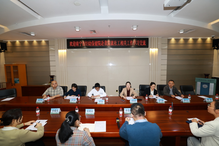 10月22日,南宁市妇幼保健院人事科副科长洪佳欣一行4人到我院就医务社工工作开展专项交流学习。我院社工部副主任谢海莉、团委书记蓝飞燕、护理部副主任黄德斌、组织人事科副科长廖作文、门诊部副护士长黄元琦及相关科室骨干参会,谢海莉主持。