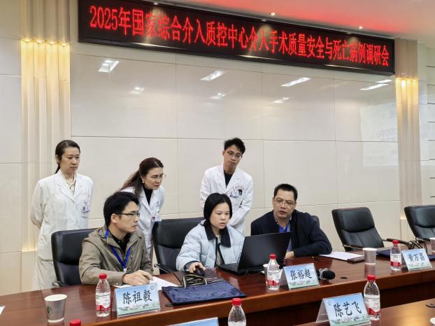 为贯彻落实《全面提升医疗质量行动计划(2023-2025年)》精神,进一步提升医疗质量安全体系建设,11月28日,国家综合介入技术质控中心专家组一行莅临我院,开展介入手术质量与死亡病案专项调研。我院副院长黄锋,医务部、医院质量管理办公室、信息中心、病案信息管理科、肿瘤内科、肝胆外科、放射科相关部门领导及骨干参加座谈会,医务部部长梁晓南主持会议。