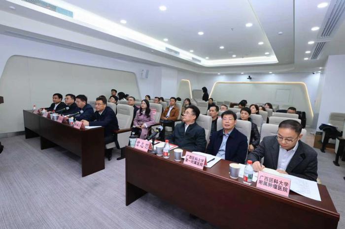 自治区卫生健康委、广西医科大学相关部门及各直属附属医院、钦州市卫生健康委等派出单位相关负责同志参加座谈会。我院党委书记、院长郑宝石及相关职能部门负责人参加。