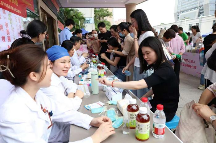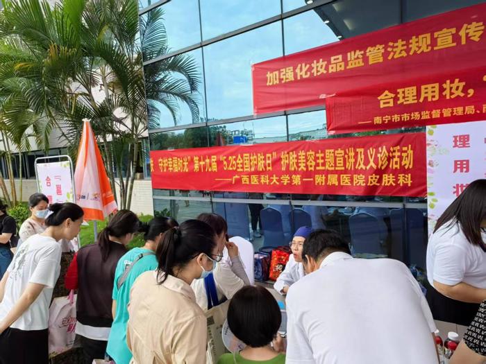 此次活动汇聚了多方力量,自治区药监局领导,自治区药监局办公室、政策法规处、化妆品监管处,自治区药品检验研究院、南宁市市场监督管理局、广西化妆品协会、自治区皮肤病医院等单位共同参与。作为广西医疗行业代表,我院皮肤科党支部始终秉持 “人民健康,皮肤有责” 理念,以专业技术助力构建化妆品安全社会共治体系,彰显了广西在化妆品安全领域的责任与担当。